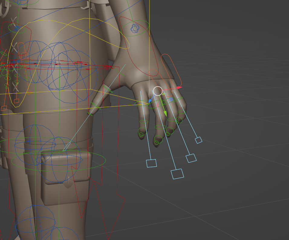 进入姿态模式,拖到一下 rig 控制器。模型跟着动作,ok,绑定完成!