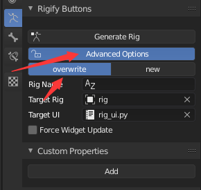 2、如果已经绑定好了,然后只想改变一个骨骼,可以在骨架属性创建 rig 控制器下面找到高级选项选上覆盖。然后再点击创建 rig。